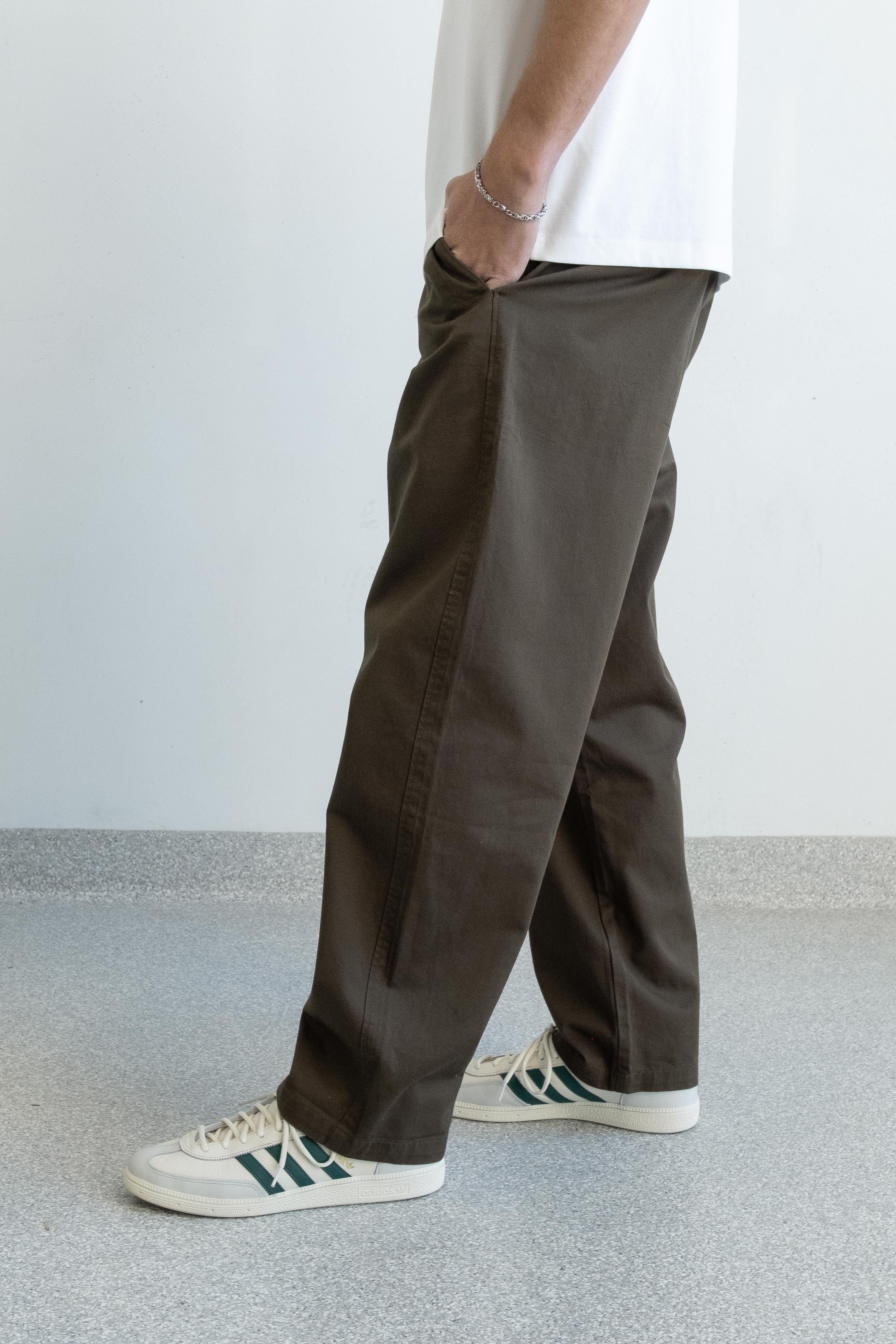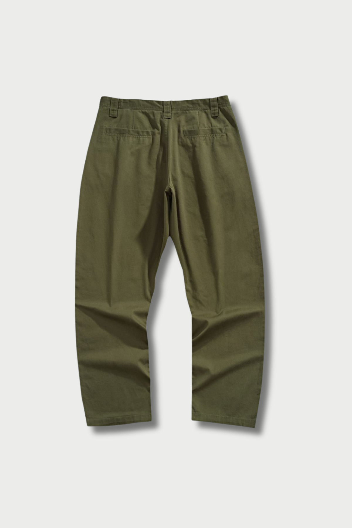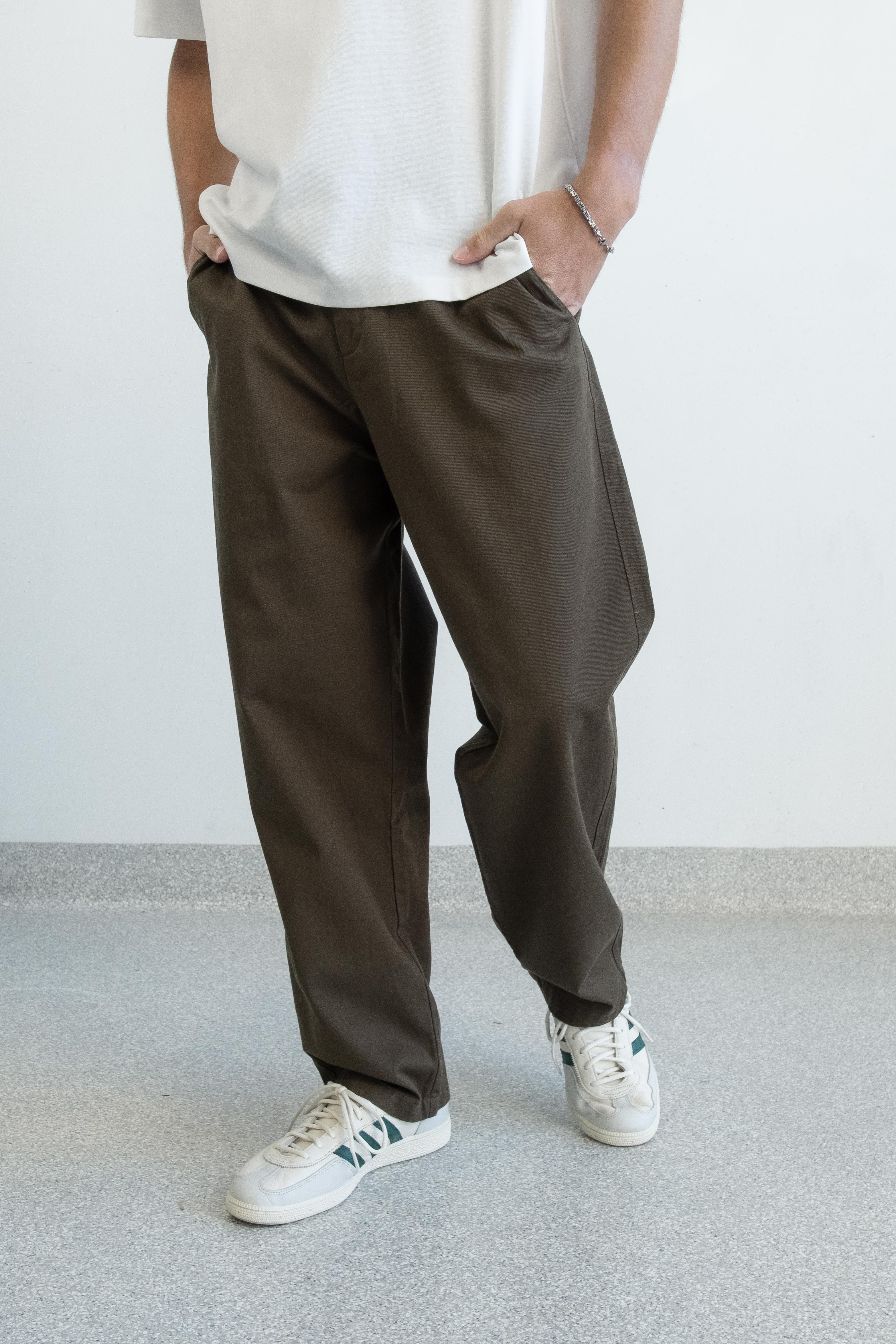 Echo Trouser in army — a modern staple with a roomy cut and timeless appeal.