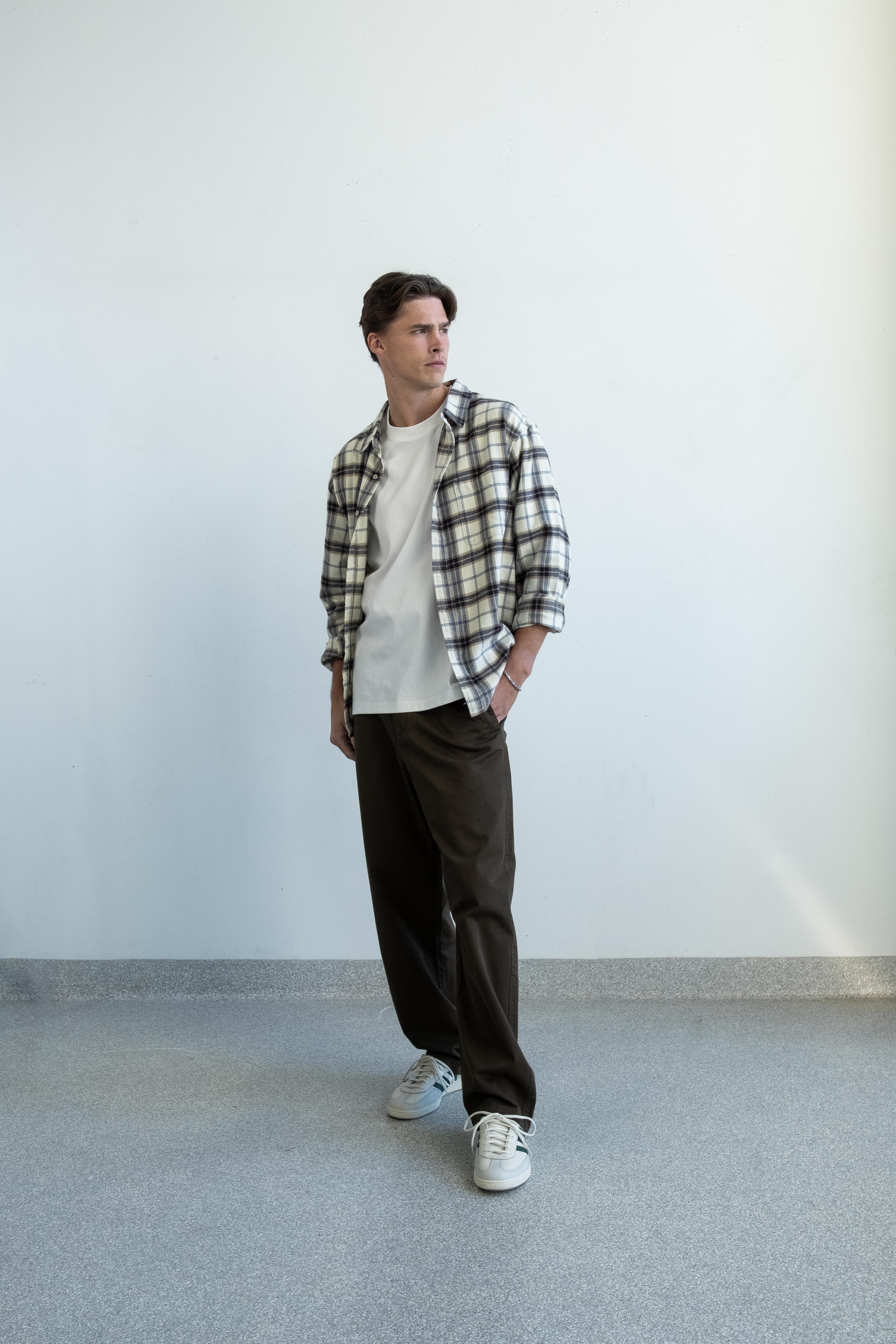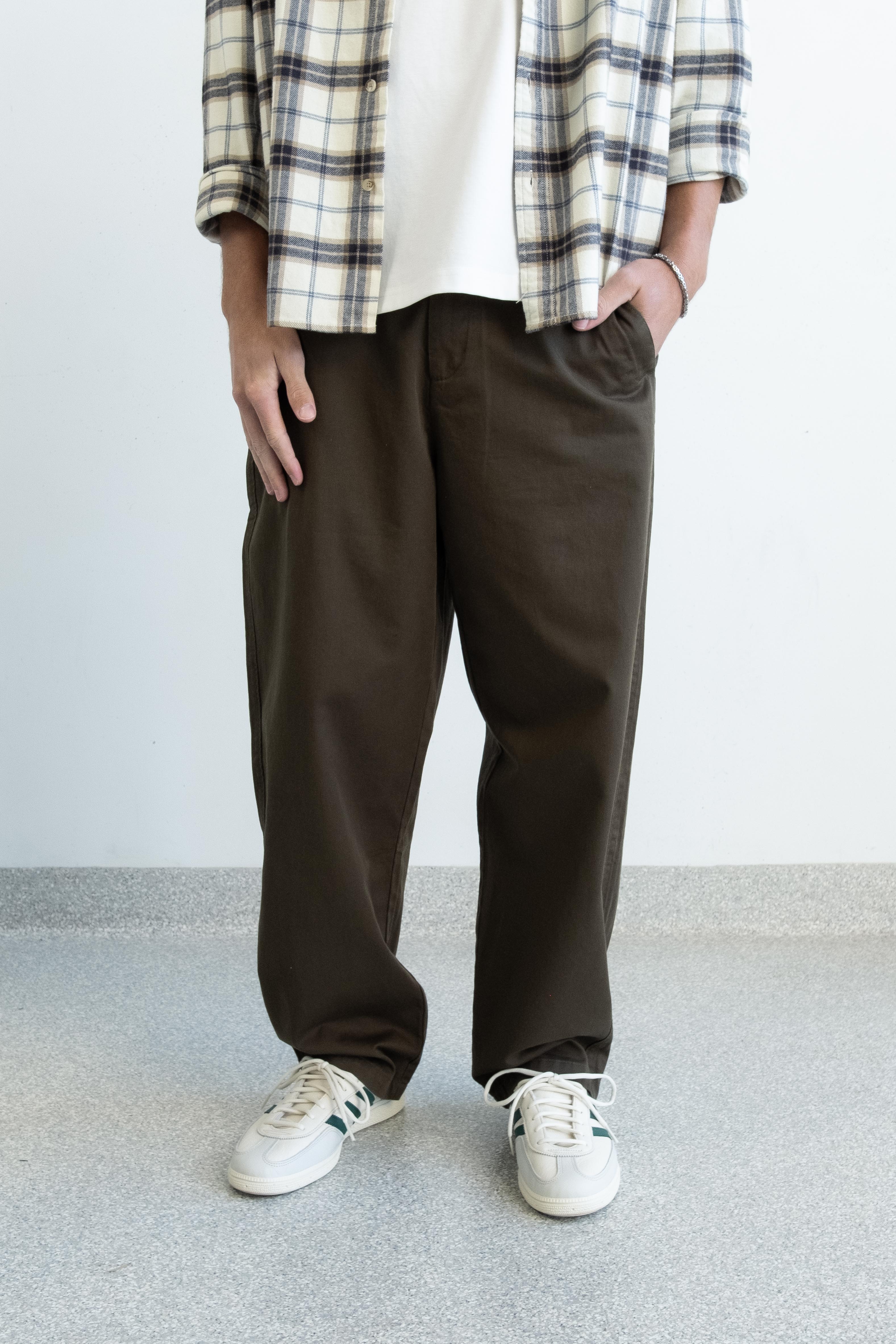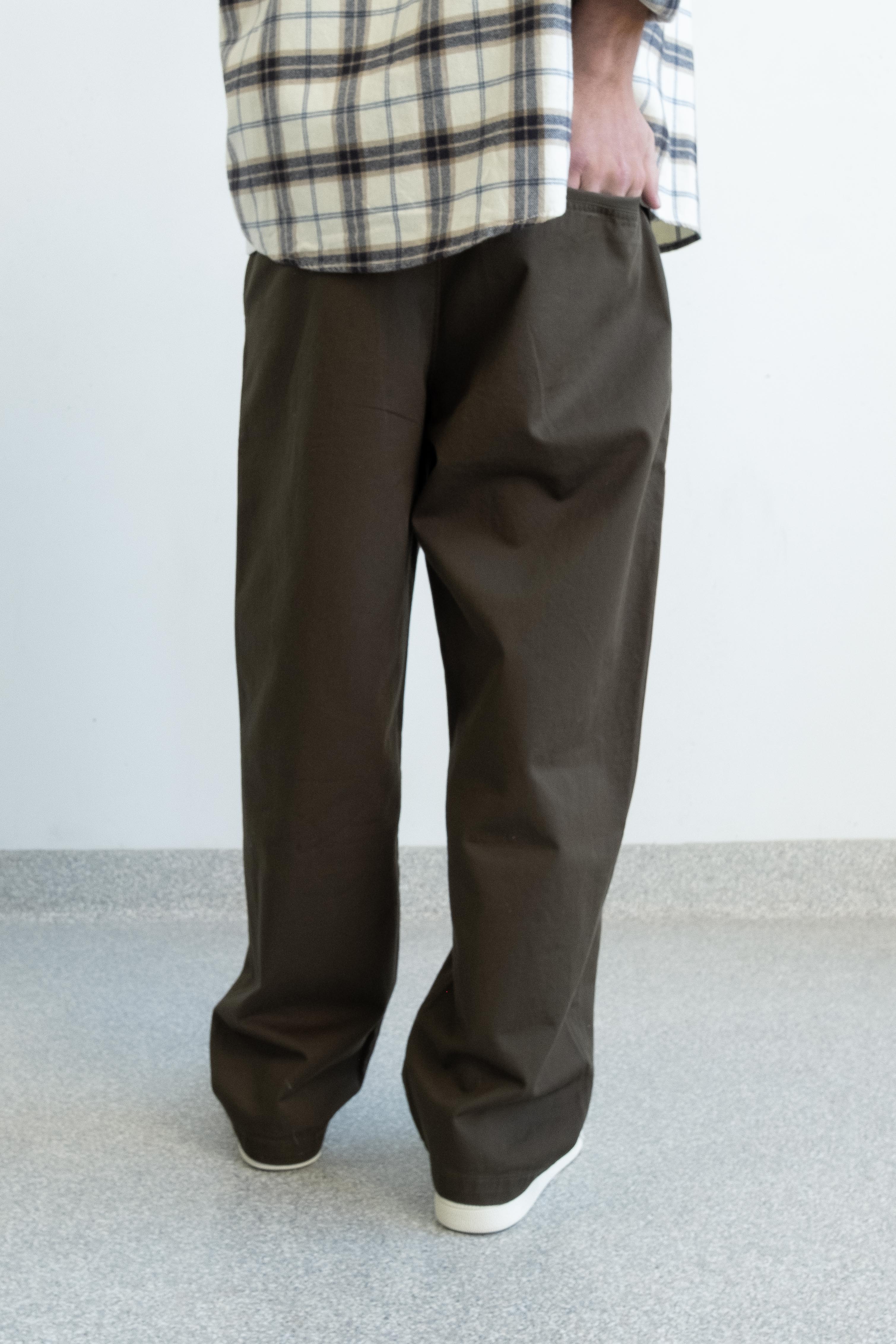 Echo Trouser in army — a modern staple with a roomy cut and timeless appeal.