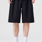 Relaxed fit with a straight cut and elastic waistband for adaptable wear.
