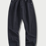 Relaxed denim jeans, dark 100% cotton denim with a laid-back silhouette and versatile appeal, complete with YKK hardware.