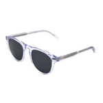 Featuring a classic wayfarer-inspired shape, with slightly rounded edges that soften the bold, angular lines typical of the traditional wayfarer design. The frames are finished in translucent acetate, with a dark grey polarised lens that delivers a bold statement.