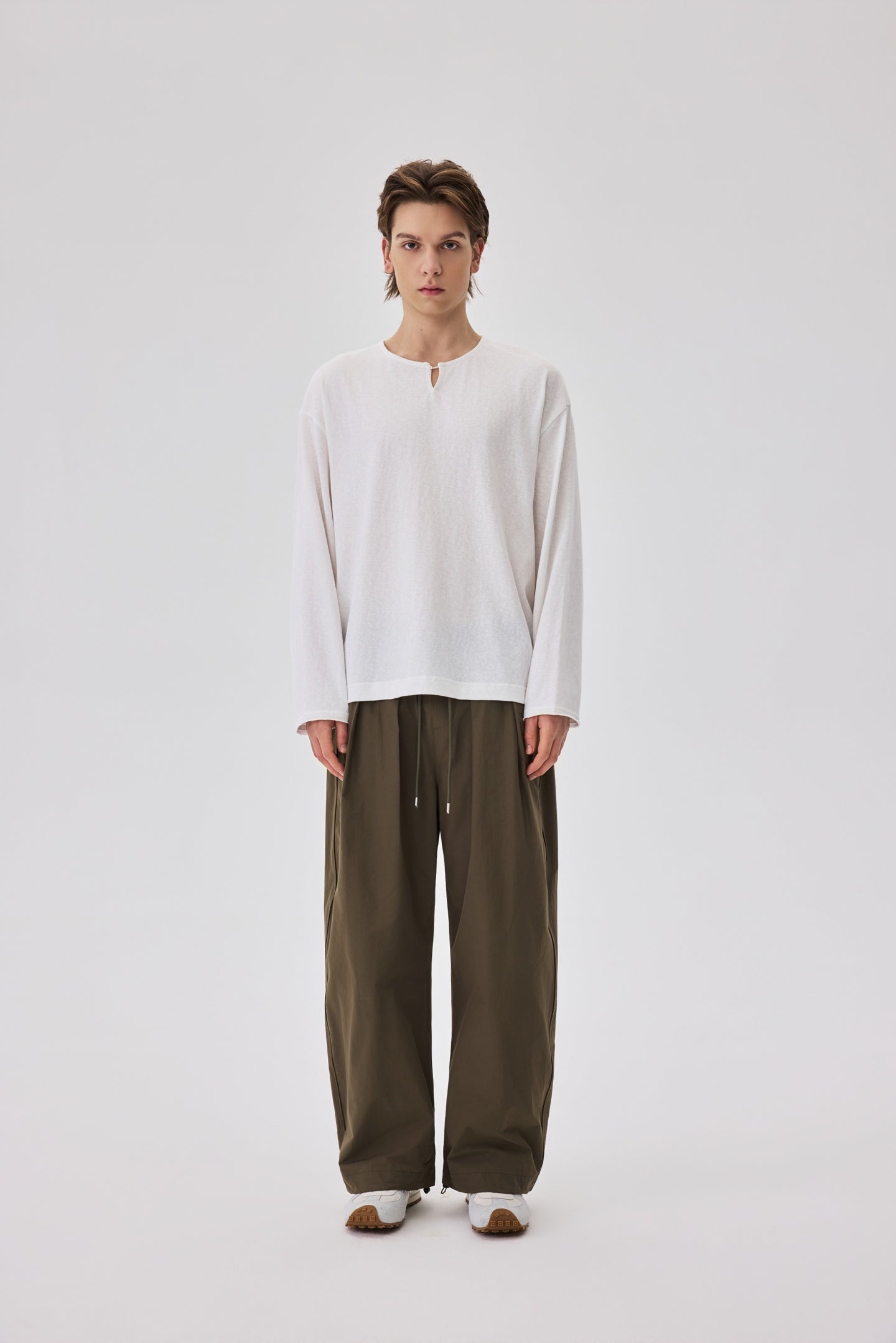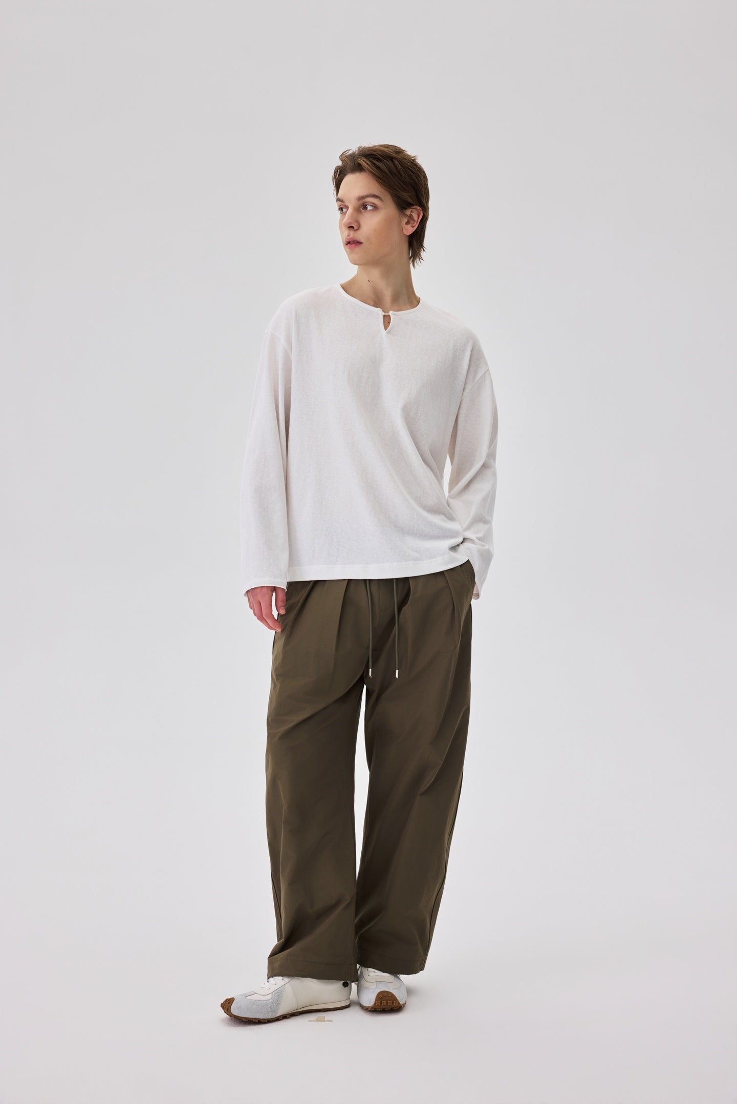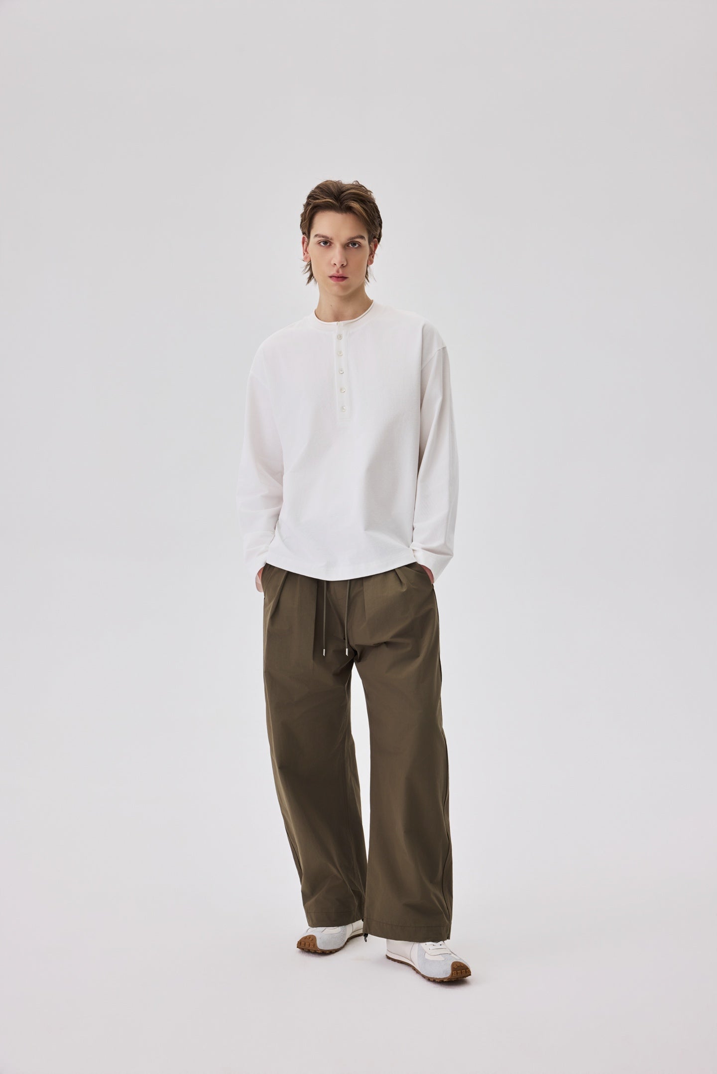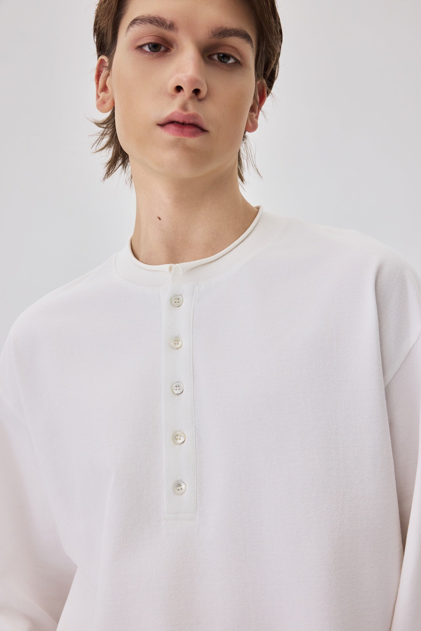 White Long Sleeve Henley Tee