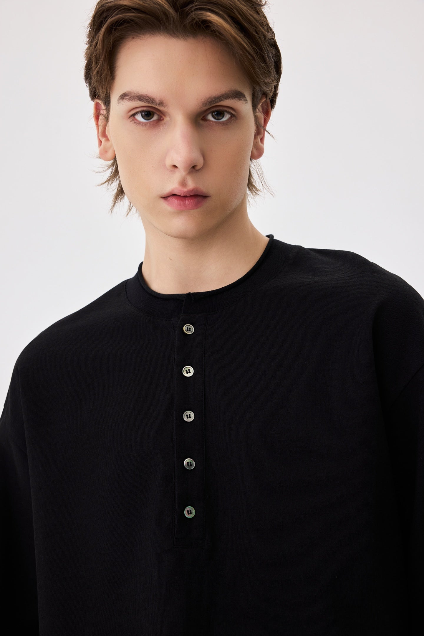 Black Long Sleeve Henley Tee