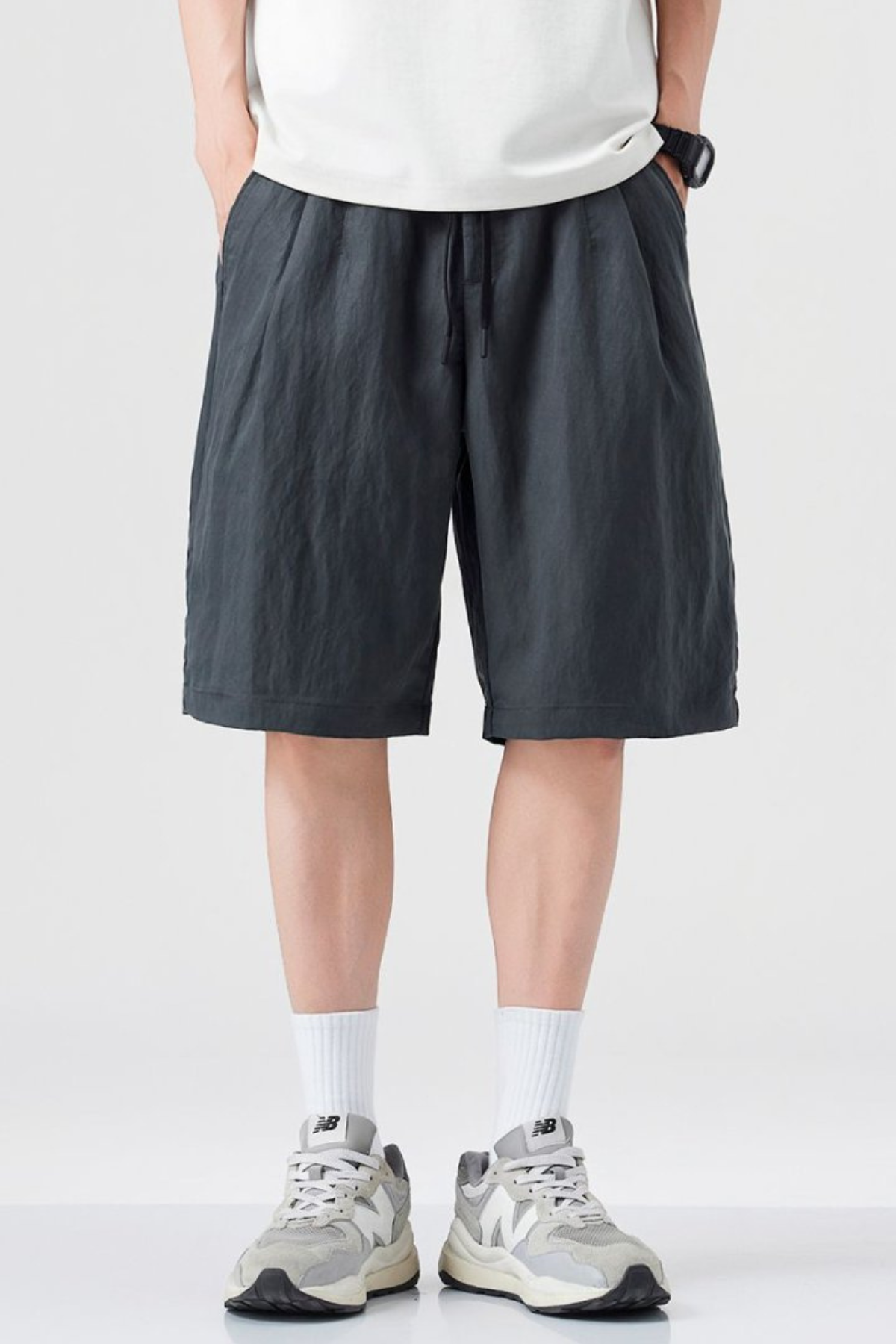 Relaxed fit with a straight cut and elastic waistband for adaptable wear.