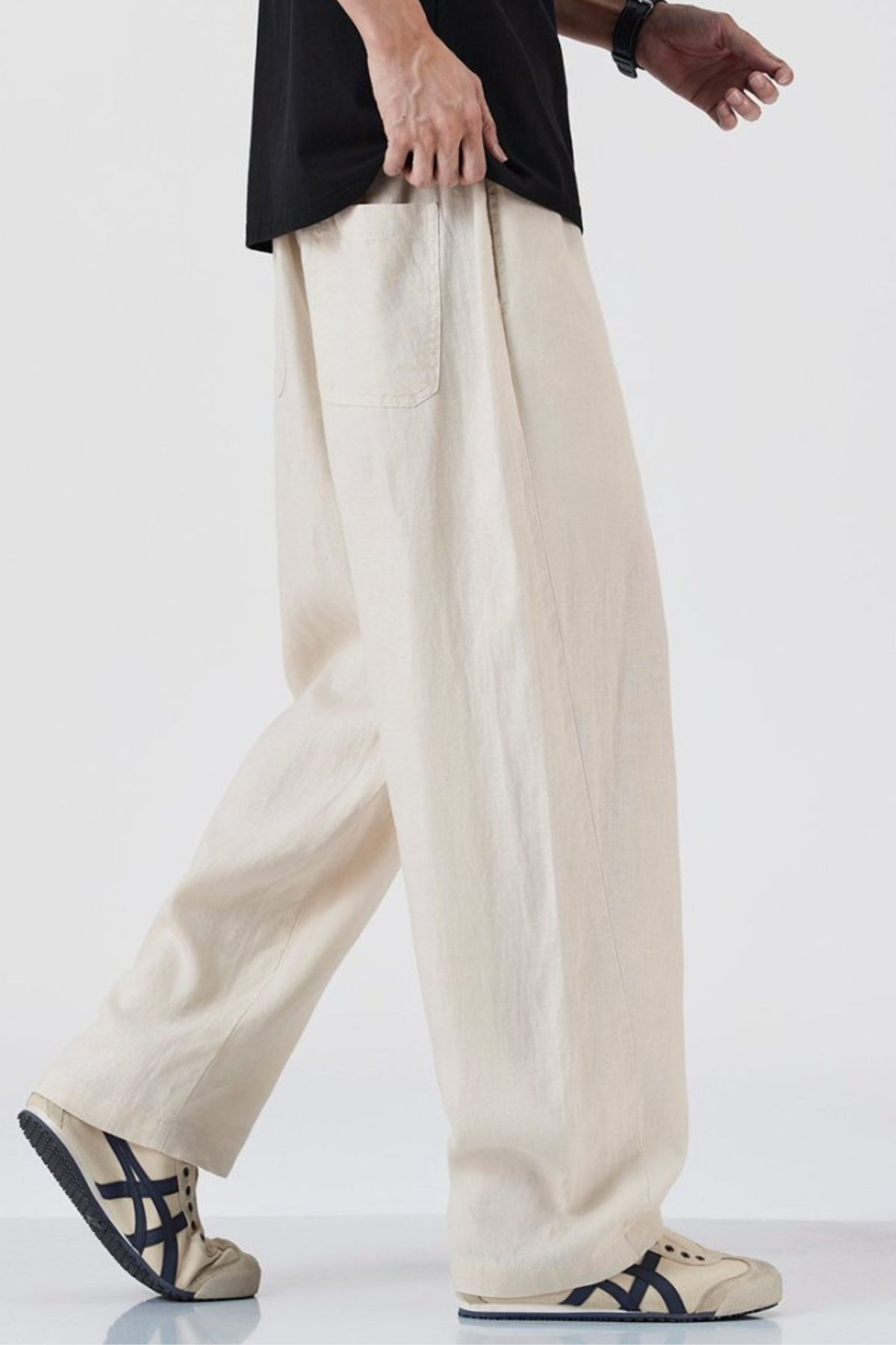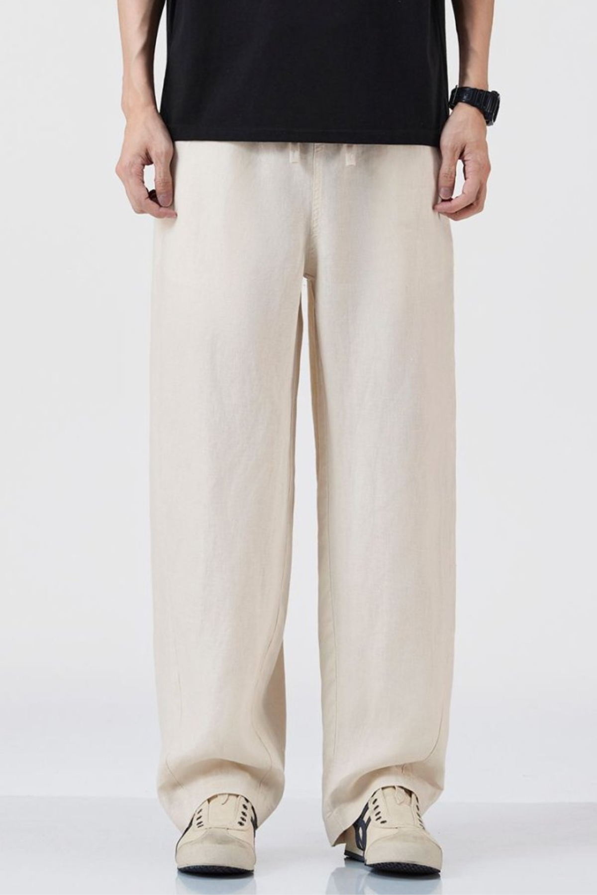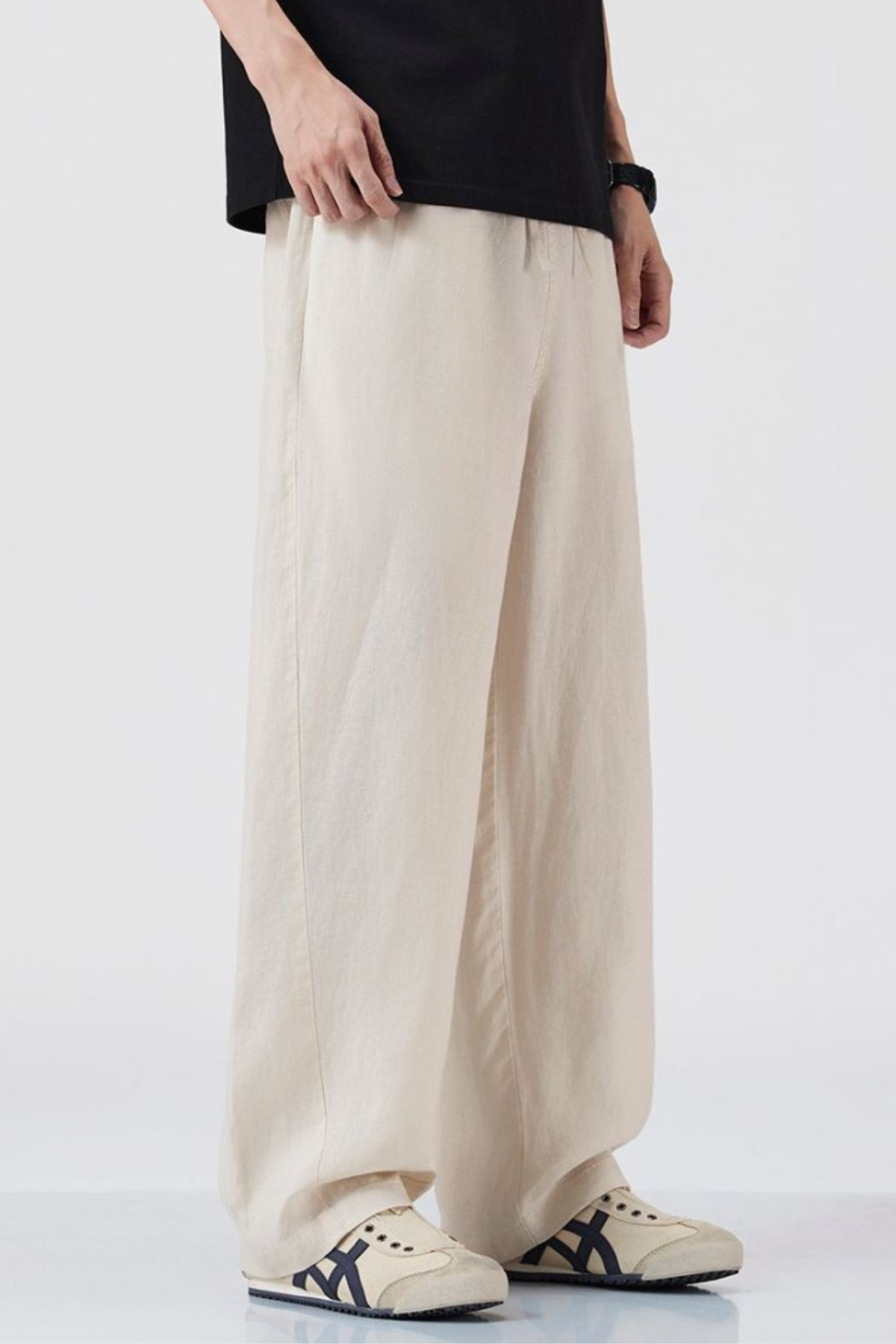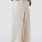 Relaxed wide-leg fit with a mid-rise waist. Designed to fall straight with soft volume through the hem.