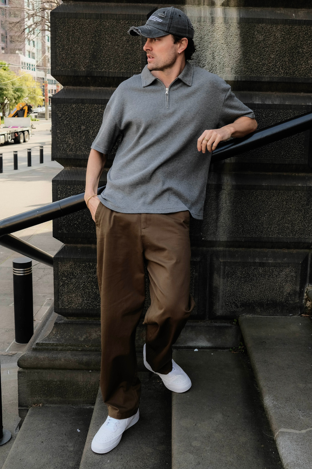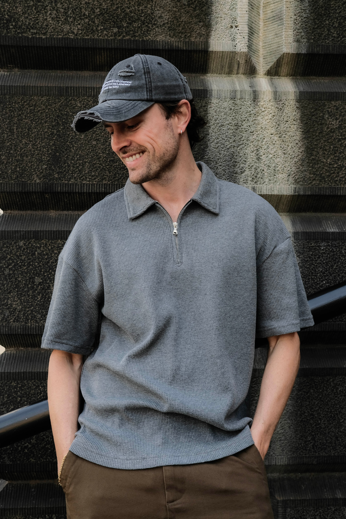 Zip Waffle Polo is made in a soft cotton waffle fabric.  An oversized fit and 1/4 zip give this piece an edge over a normal polo.  Perfect for work or the weekend.