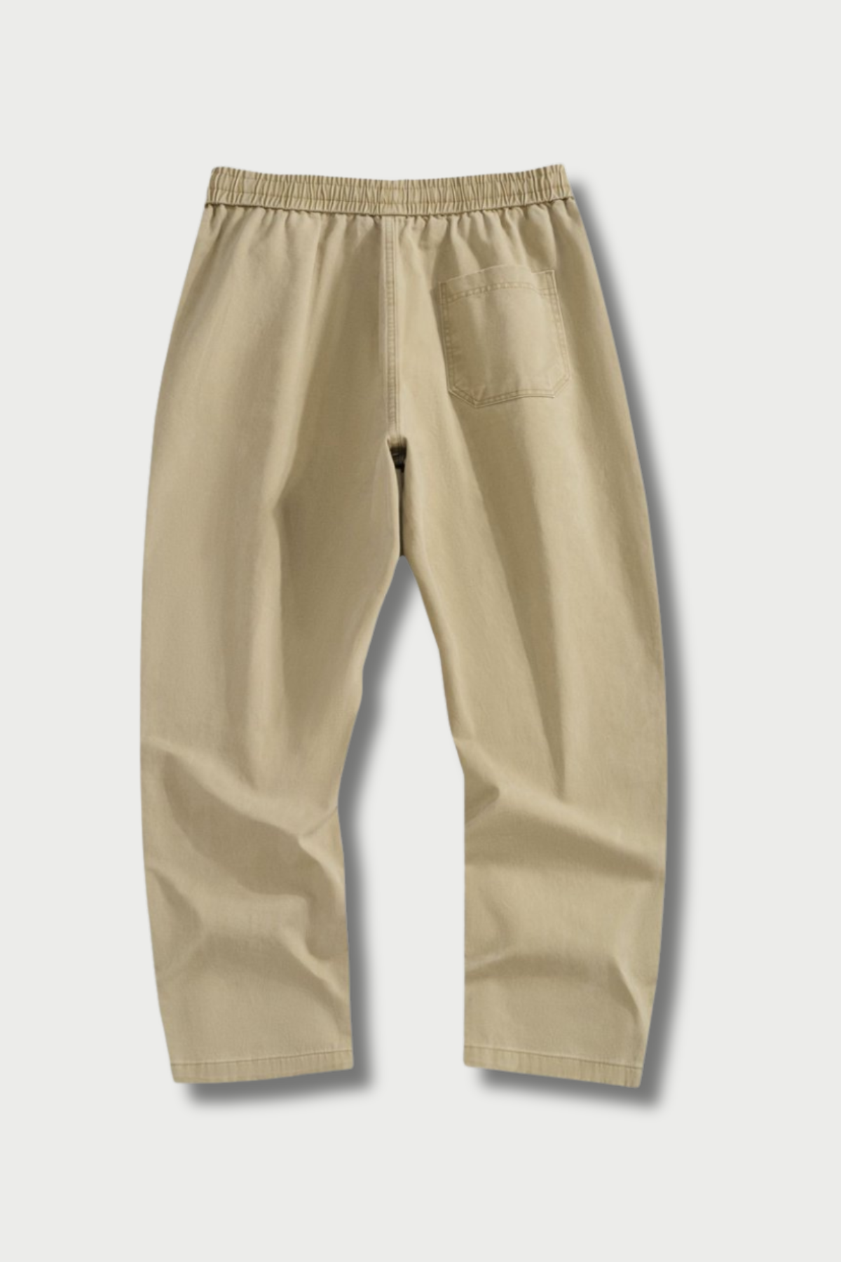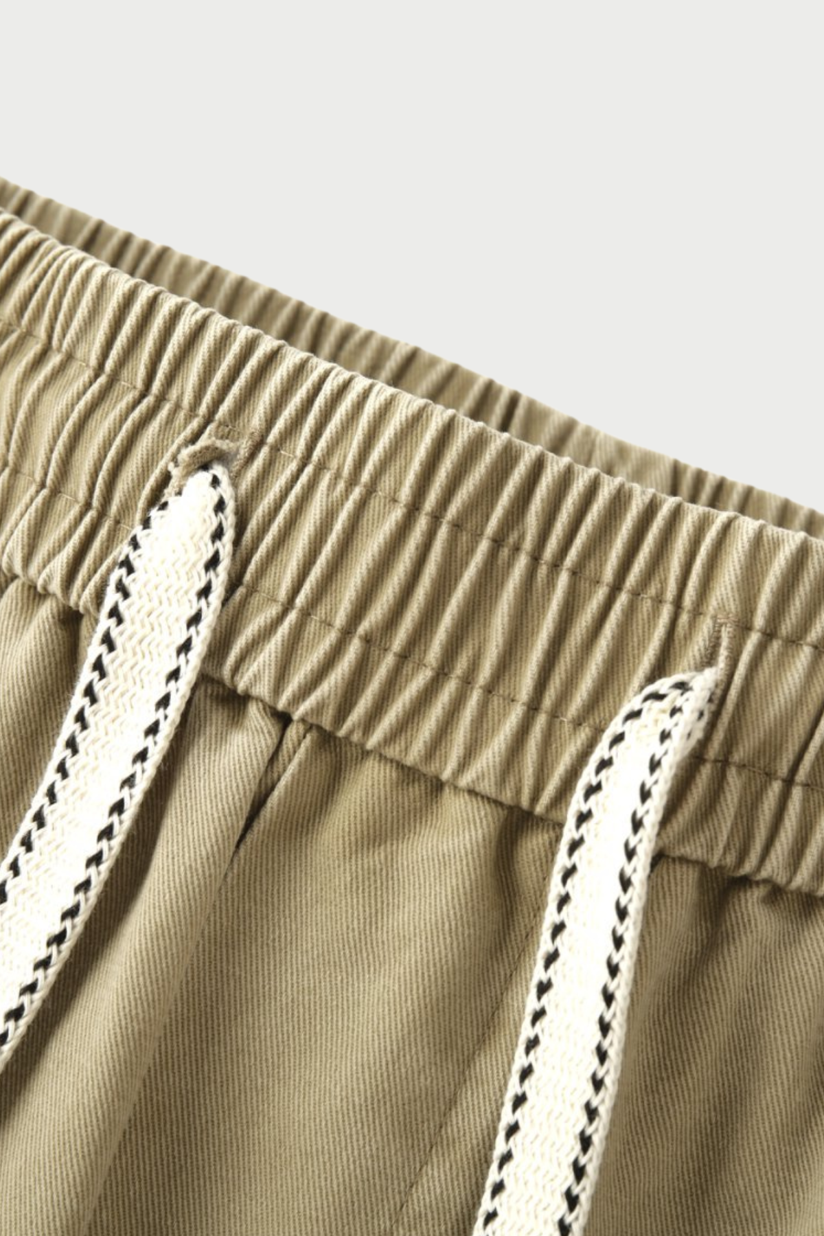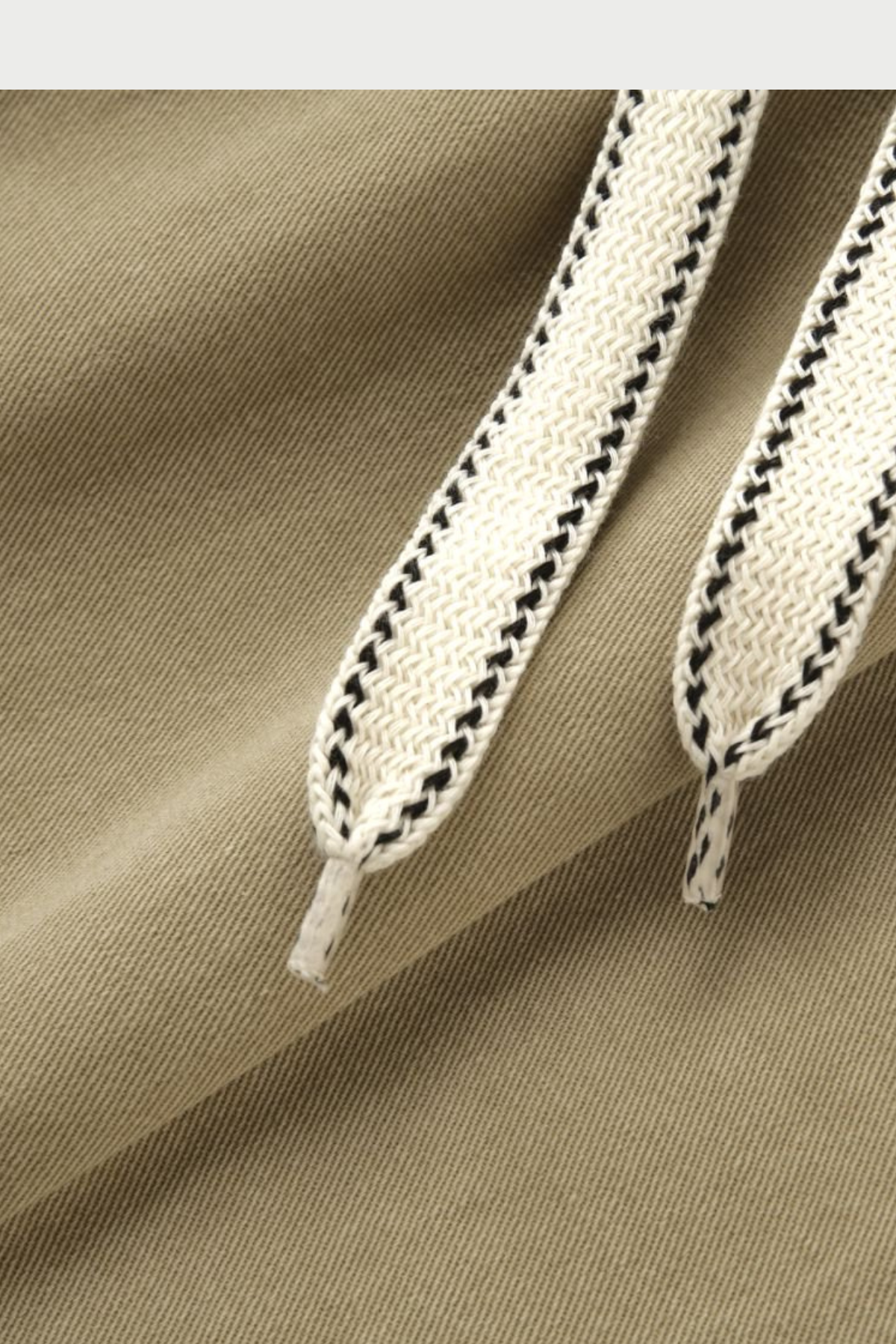 Drift Drawstring Pant in Khaki, captures a relaxed utilitarian balance between comfort and structure.