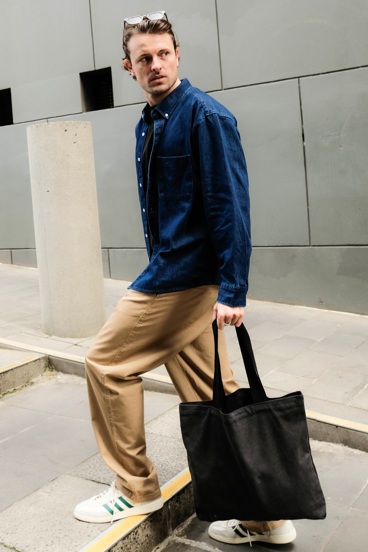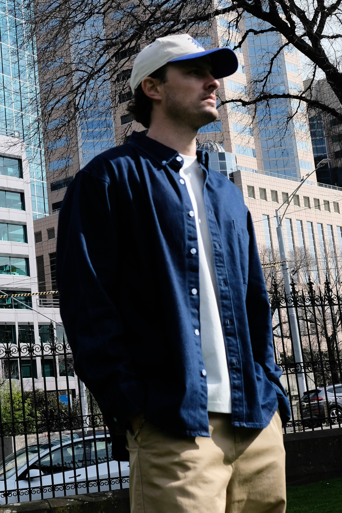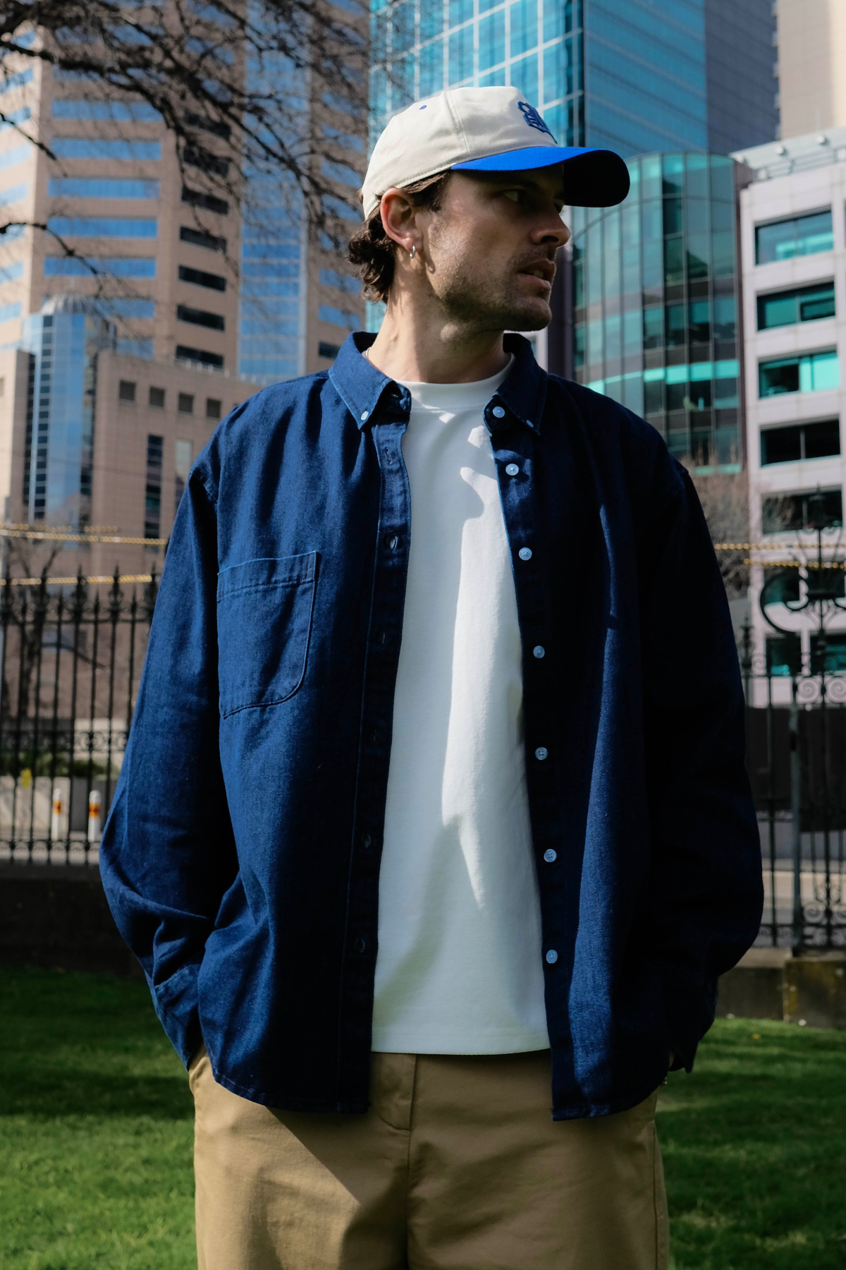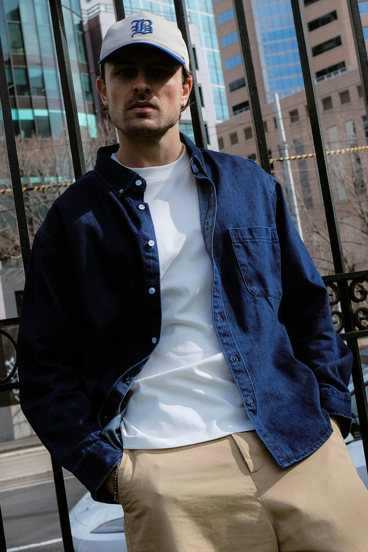Denim Shirt in dark blue — a versatile layer that blends utilitarian charm with everyday wearability.
