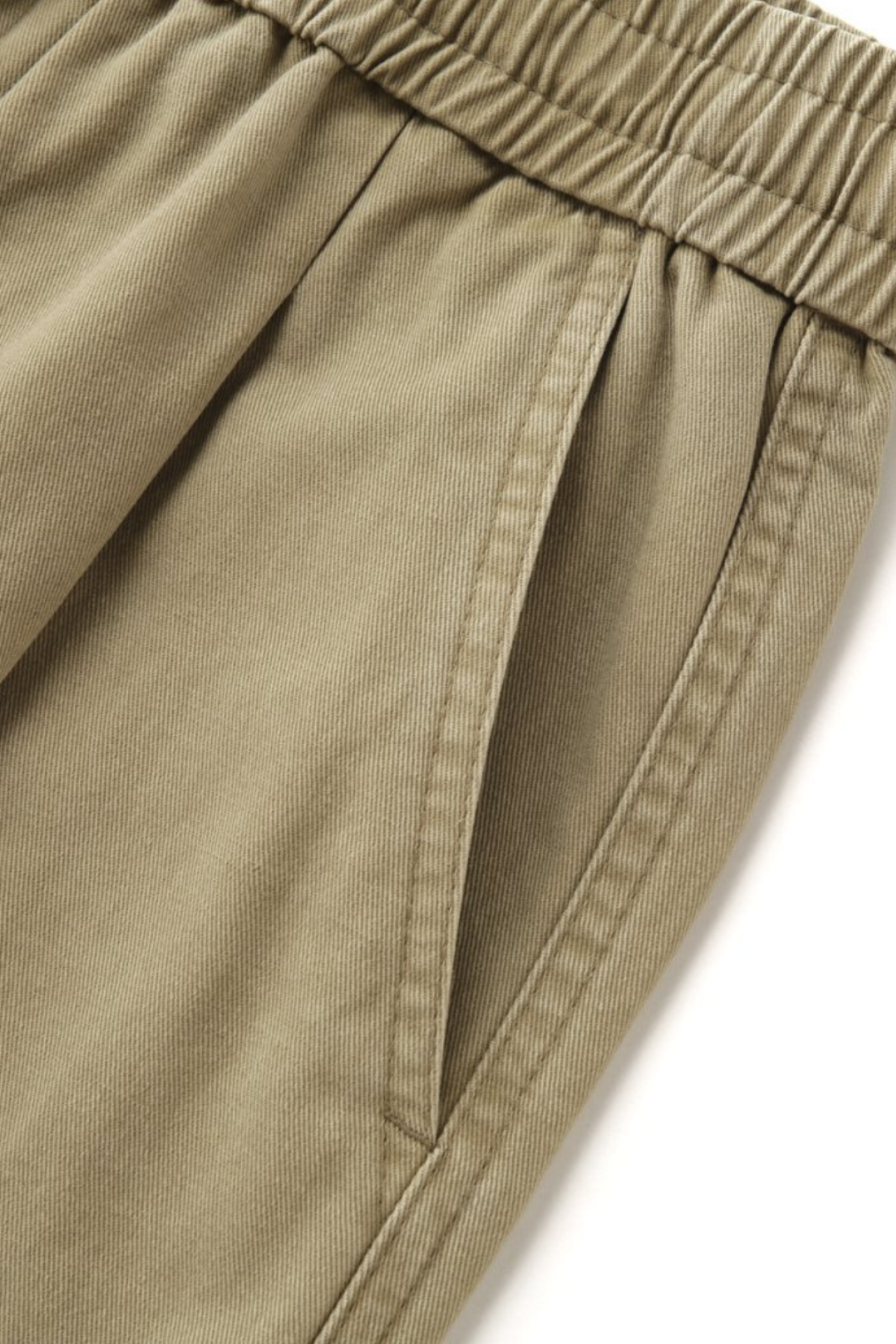 Drift Drawstring Pant in Khaki, captures a relaxed utilitarian balance between comfort and structure.