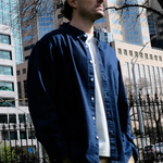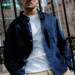 Denim Shirt in dark blue — a versatile layer that blends utilitarian charm with everyday wearability.