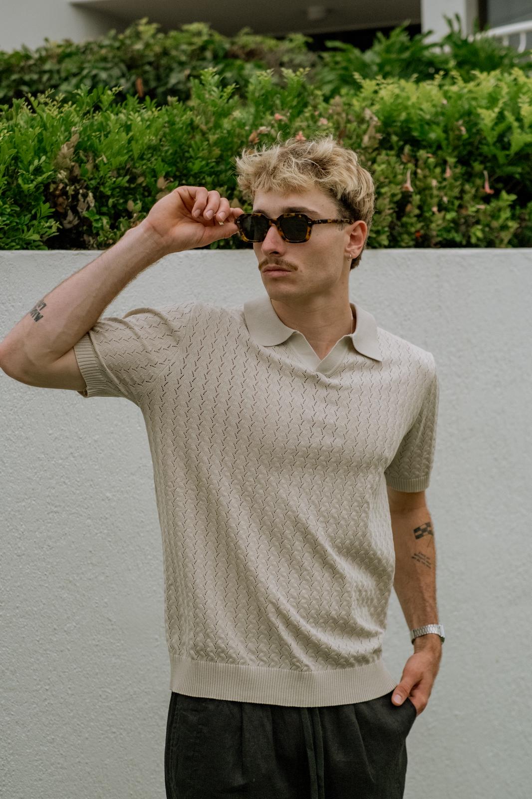Florence Polo, redefines smart casual with a luxe knit texture and tailored silhouette.