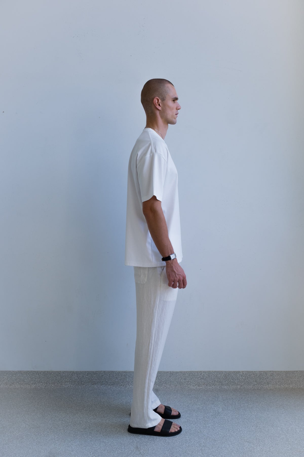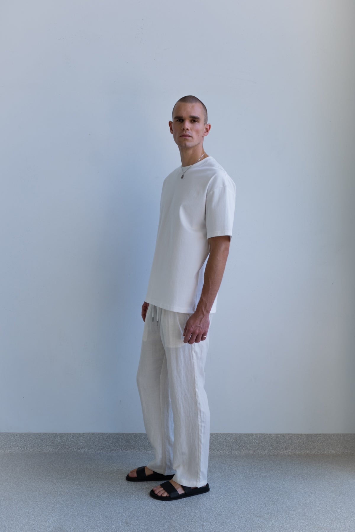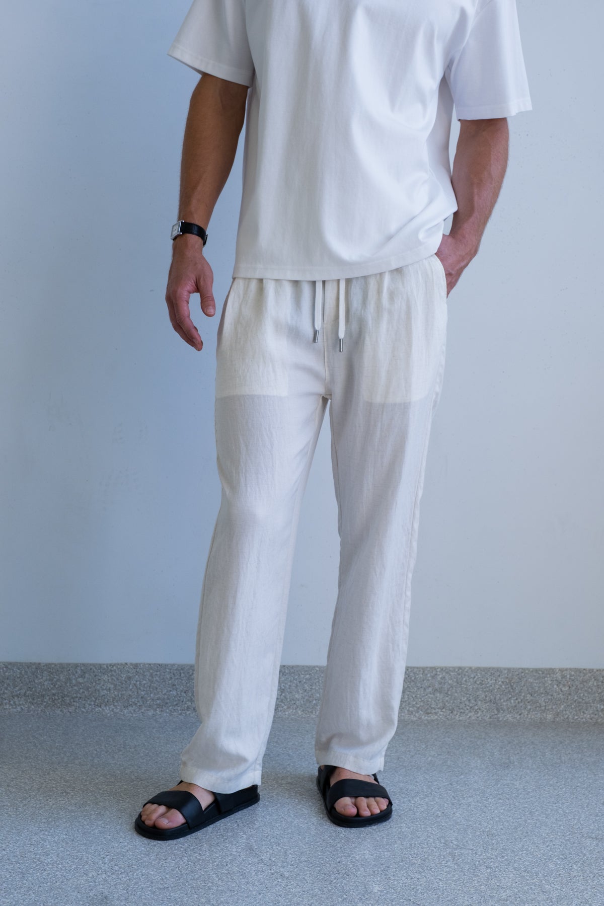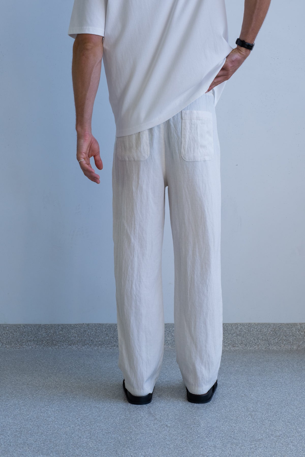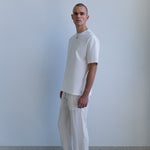 The Nara Beach Trouser is cut from a lightweight blended fabric with a soft, fluid drape and breathable feel. Designed for warm days and easy movement, it offers comfort without losing structure.