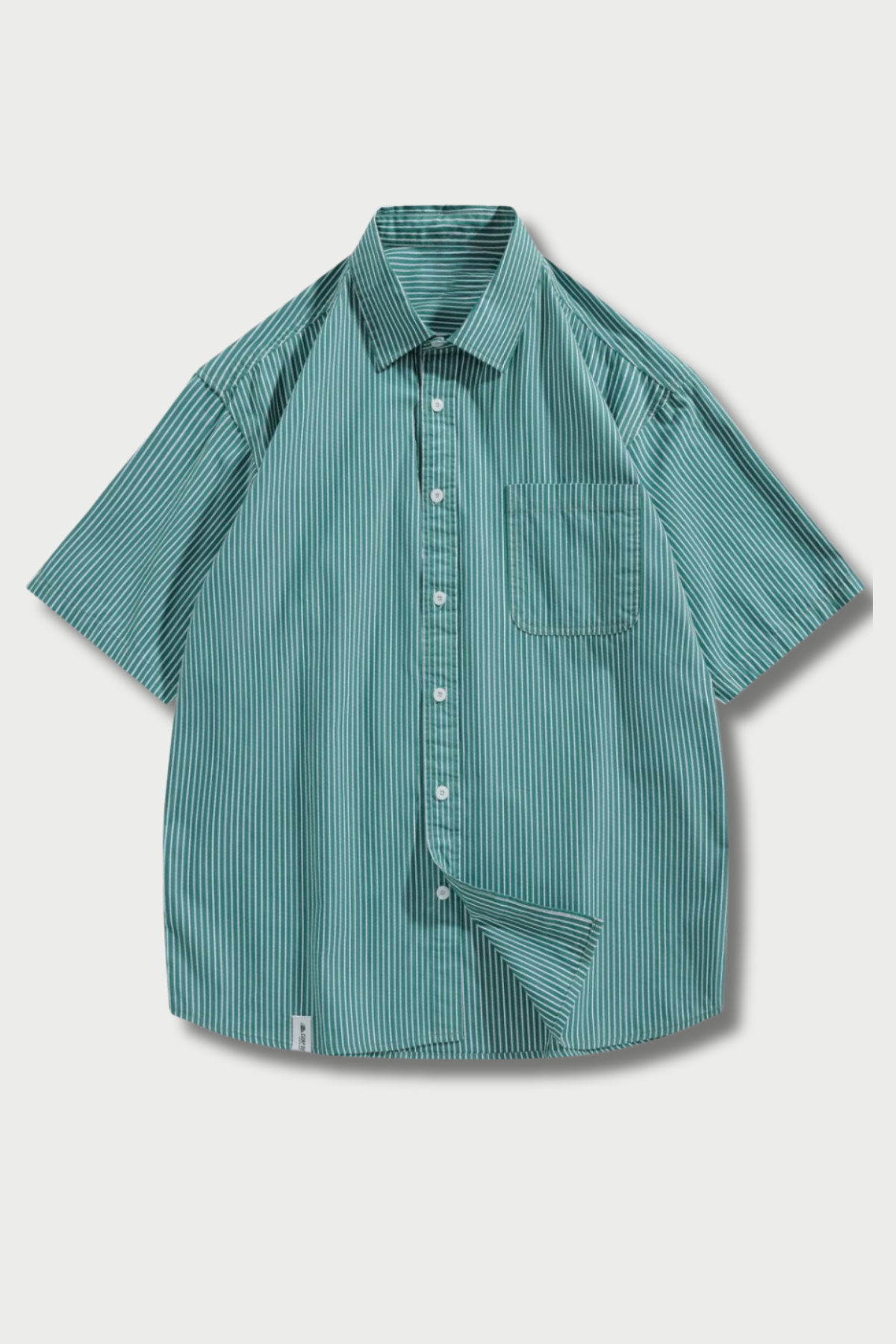 Skyline Stripe Short-Sleeve Shirt, a fresh take on a timeless summer classic.  Made in a crisp 100% cotton and with a boxy fit.  Size down for a cropped fit.